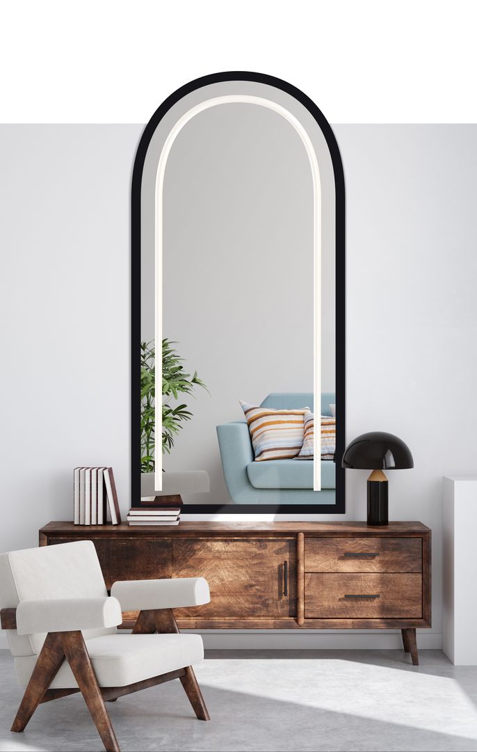 Poloviční oválné zrcadlo v černém rámu MDF SLIM - DOMI - barva rámu dle vašeho výběru
