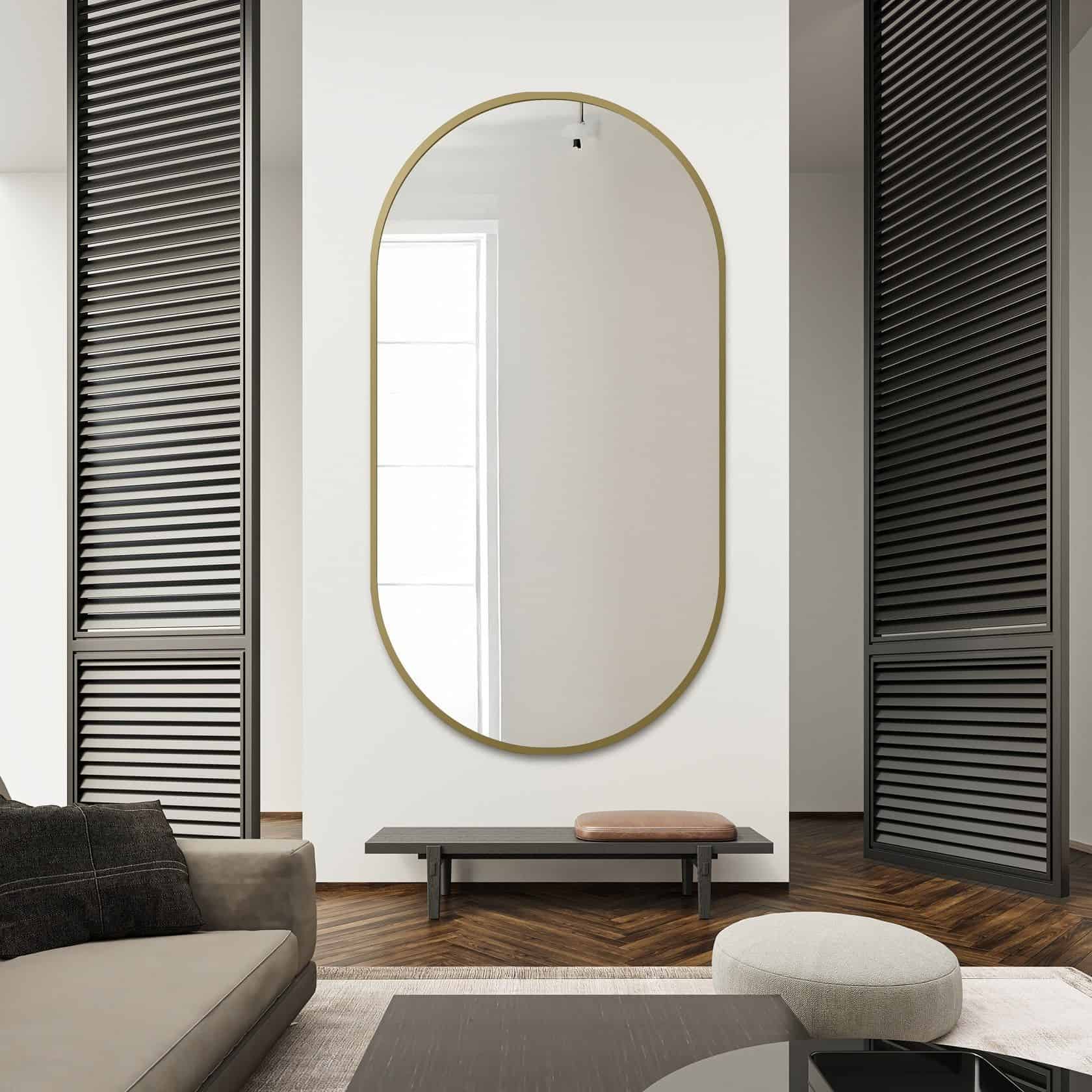 Oválné zrcadlo ve zlatém rámu MDF SLIM - OLI - barva rámu dle vašeho výběru