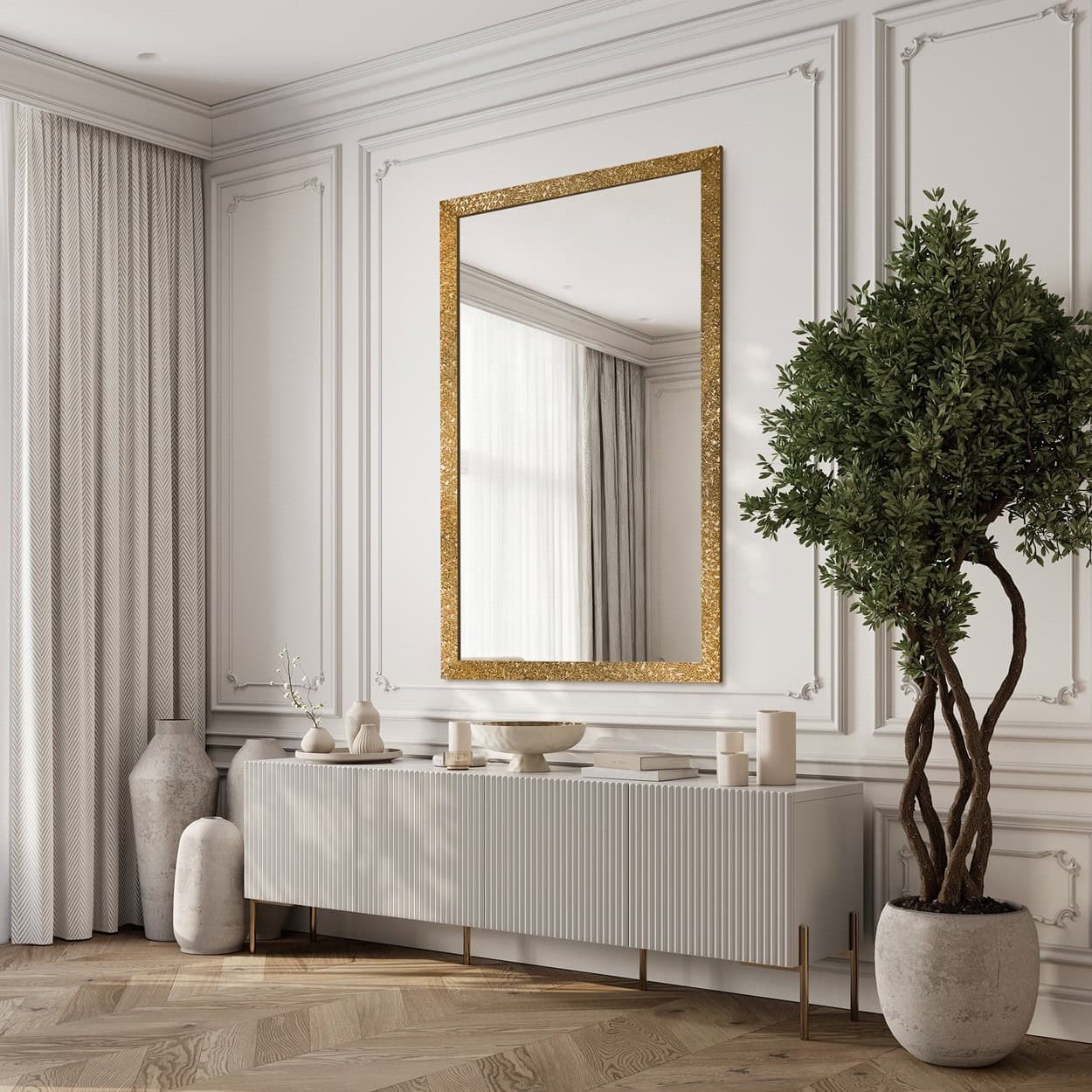 Zrcadla v rámu nabízejí snad největší rozmanitost ze všech druhů zrcadel. Souvisí to s tím, že vzhled rámů může být velmi různorodý — a právě to umožňuje výběr a přizpůsobení zrcadla charakteru domova, stylu zařízení i ostatnímu vybavení a dekoracím. Spektrum rozdílů se týká mnoha prvků: tvaru, velikosti, šířky a barvy rámu, stejně jako menších nebo větších dekorací, včetně ornamentů či sochařských a bohatých akcentů. Právě ty evokují přepych, podobně jako zlato evokuje luxus. Po staletí měla takový status i samotná zrcadla, avšak jejich charakter se postupem času měnil. Dnes patří zrcadla ve zlatém rámu k nejmodernějším a nejoblíbenějším interiérovým trendům. Co je na nich tak výjimečného, proč jsou žádanými předměty a jak je využít při zařizování prostoru?
