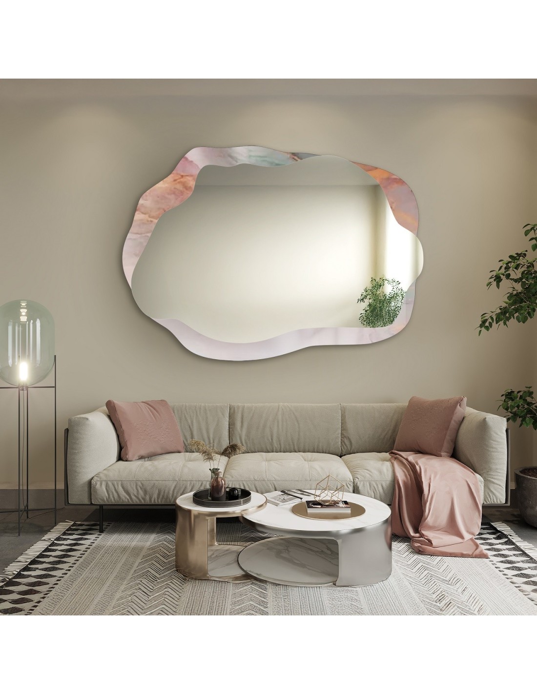 Nepravidelné zrcadlo na růžovém...