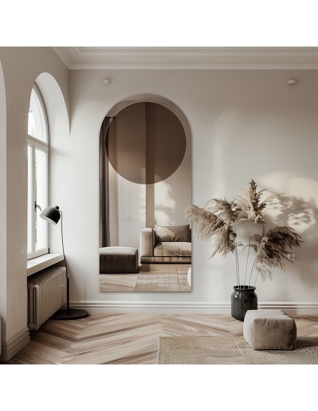Půloválné zrcadlo s kulatou hnědou zrcadlovou tabulí – MOCHA CHOCO