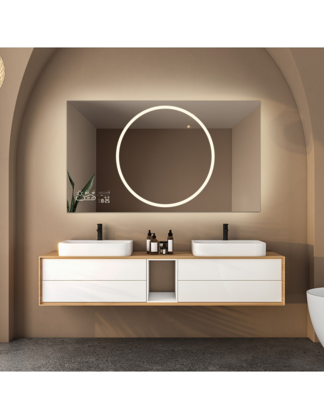 Meteorologická stanice s Wi-Fi - Jedná se o chytrý modul, který umožňuje sledovat povětrnostní podmínky jak uvnitř, tak i venku. Meteorologická stanice s Wi-Fi je podsvícena nezávisle na osvětlení zrcadla, což umožňuje číst data za všech podmínek, stejně jako v noci s funkcí "noční režim". Navíc stanice má funkci zobrazení aktuálního data, času a Wi-Fi 2,4 GHz. Stanice vyžaduje další trvalé napájení. Velikost LED displeje na zrcadle: 7 cm x 17 cm. Modul lze nastavit pomocí dedikované aplikace pro zařízení s iOS nebo Androidem, což umožňuje přizpůsobit všechna nastavení dle svých potřeb.