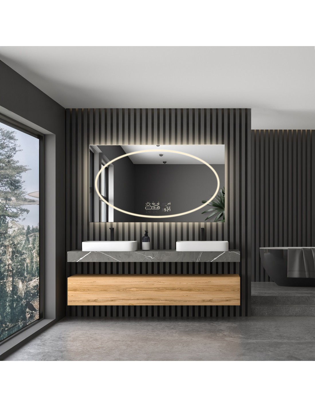 Meteorologická stanice s Wi-Fi - Jedná se o chytrý modul, který umožňuje sledovat povětrnostní podmínky jak uvnitř, tak i venku. Meteorologická stanice s Wi-Fi je podsvícena nezávisle na osvětlení zrcadla, což umožňuje číst data za všech podmínek, stejně jako v noci s funkcí "noční režim". Navíc stanice má funkci zobrazení aktuálního data, času a Wi-Fi 2,4 GHz. Stanice vyžaduje další trvalé napájení. Velikost LED displeje na zrcadle: 7 cm x 17 cm. Modul lze nastavit pomocí dedikované aplikace pro zařízení s iOS nebo Androidem, což umožňuje přizpůsobit všechna nastavení dle svých potřeb.