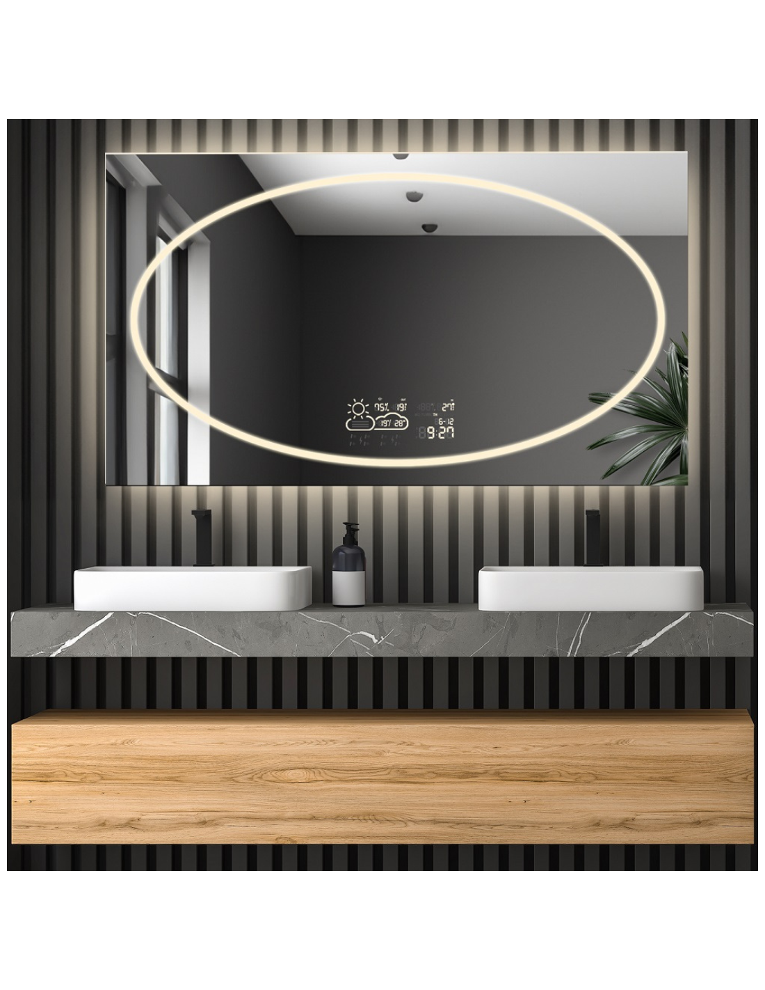 Koupelnové obdélníkové zrcadlo s meteorologickou stanicí - MELISA LED PREMIUM