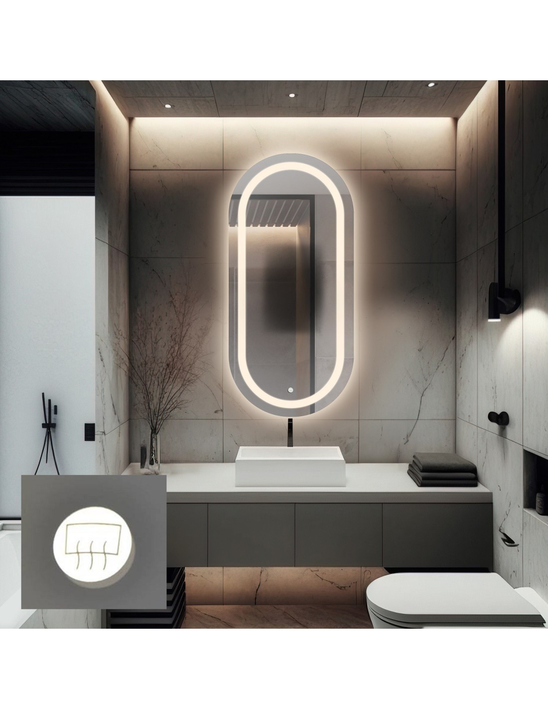 Oválné koupelnové zrcadlo s protiparovou matou - HOLI LED PREMIUM