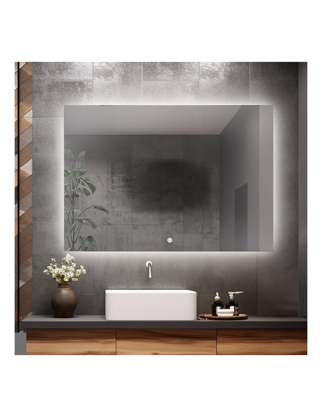 Osvětlení LED se rozsvítí, když se dotknete povrchu zrcadla v místě spínače. Spínač je trvale osvětlen - bez ohledu na osvětlení zrcadla. Díky osvětlení spínače jej lze snadno najít i ve tmě.