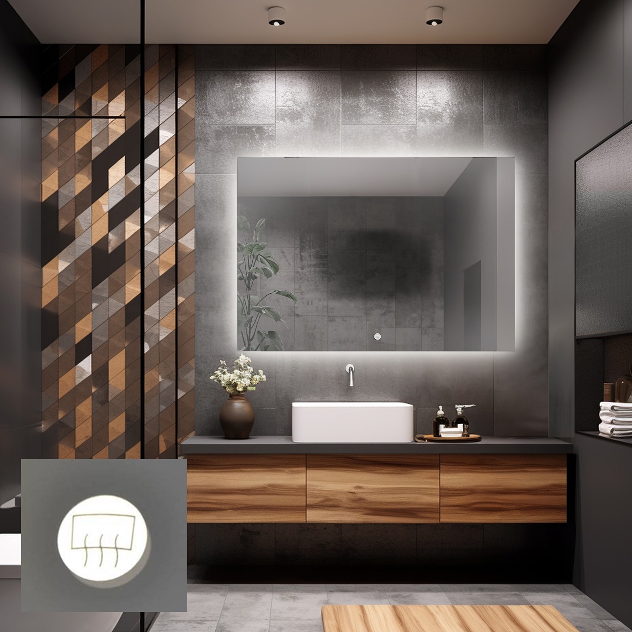 Podložka proti odpařování s vyhrazeným spínačem - Tato inovační funkce umožňuje udržet jasný a dokonalý obraz ve zrcadle, i po horké koupeli. Samostatný vypínač umožňuje aktivaci rohože kdykoli, nezávisle na osvětlení zrcadla. Tepelný prvek, umístěný v centrální části zrcadla, efektivně odstraňuje mlhu, čímž zajišťuje čisté odraz. Z technických důvodů rohož nepokrývá celé zrcadlo, ale její pokrytí je dostatečné pro zajištění viditelnosti v nejdůležitějších oblastech. Je to ideální řešení pro ty, kteří oceňují pohodlí a funkčnost.