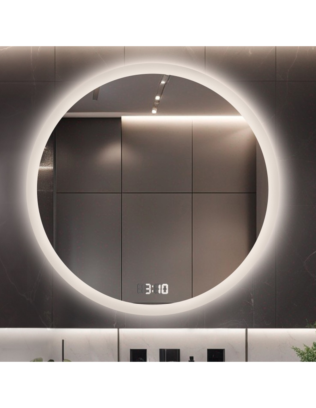 Koupelnové kruhové zrcadlo s digitálními hodinami - CAPELLA LED PREMIUM
