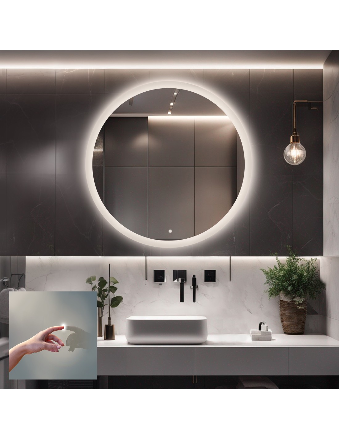 Dotykový vypínač - Dotykový vypínač je inovativní zařízení, které umožňuje ovládání osvětlení zrcadla dotykem. Modul je integrován do povrchu zrcadla, což dodává eleganci a moderní vzhled celému zrcadlu. Podsvícení vypínače usnadňuje jeho nalezení i v tmě.
