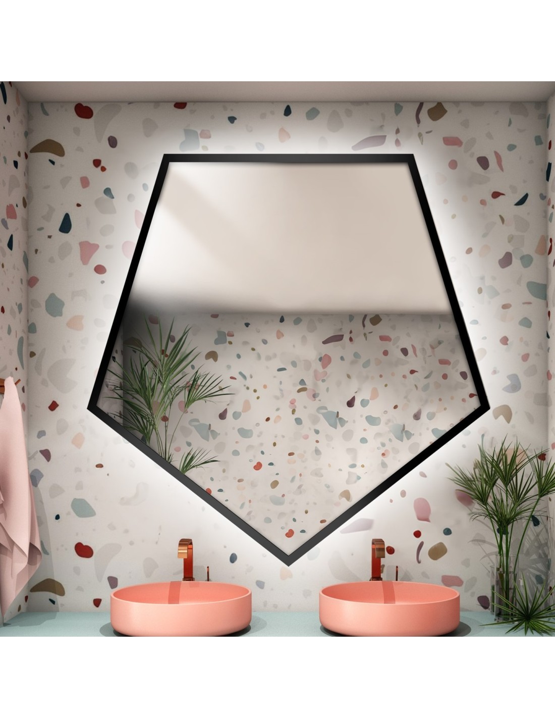 Zrcadlo geometrického tvaru v rámu s osvětlením – PENTA V RÁMU LED