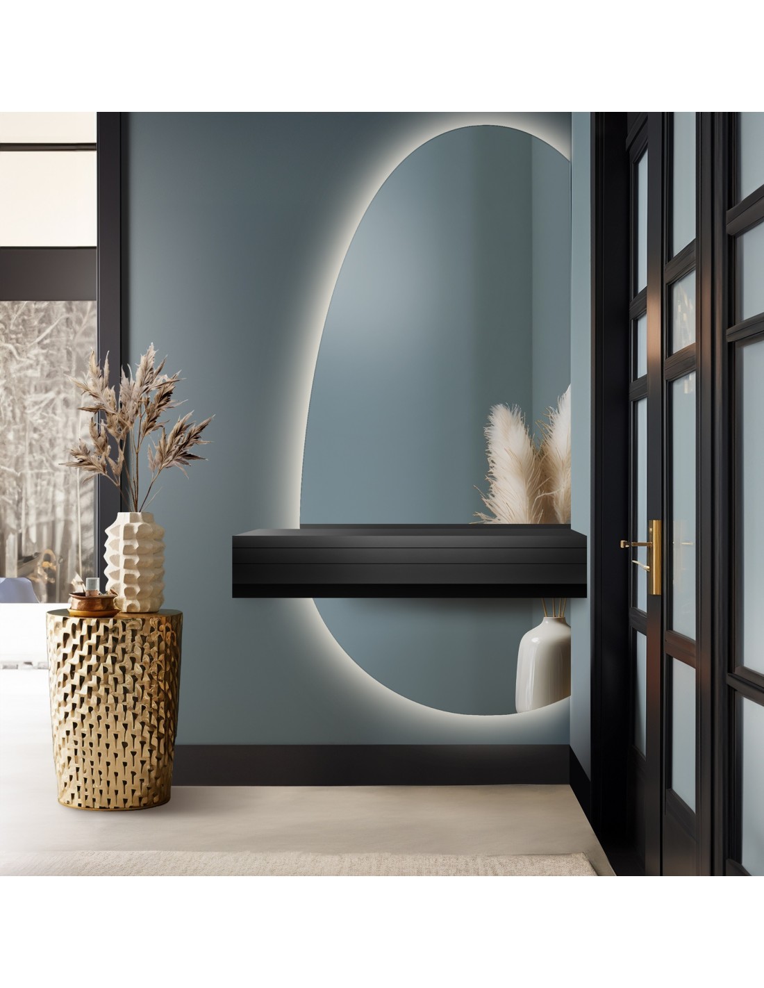 Osvětlení LED se rozsvítí, když se dotknete povrchu zrcadla v místě spínače. Spínač je trvale osvětlen - bez ohledu na osvětlení zrcadla. Díky osvětlení spínače jej lze snadno najít i ve tmě.