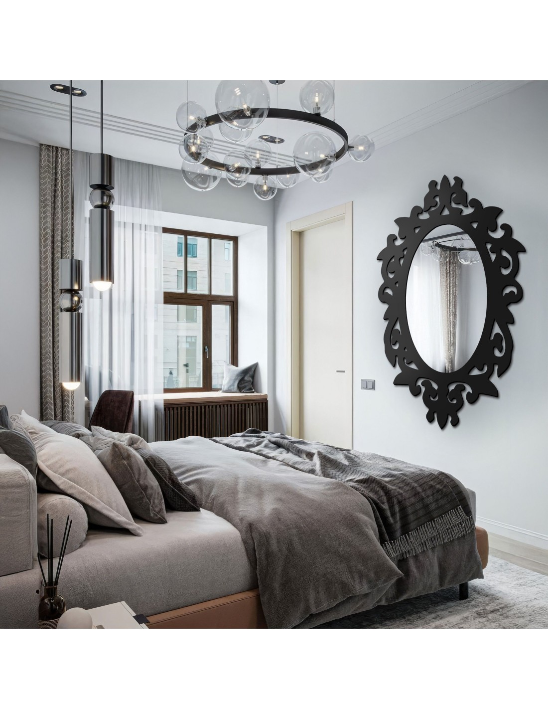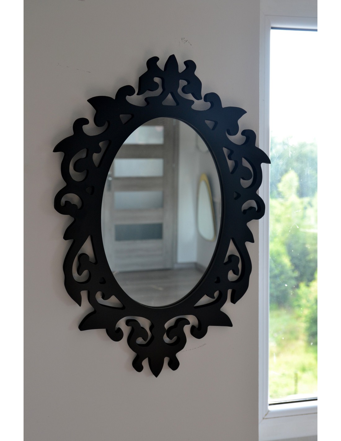 Oválné zrcadlo v černém matném mdf rámu - OLIWIER - barva rámu dle vašeho výběru