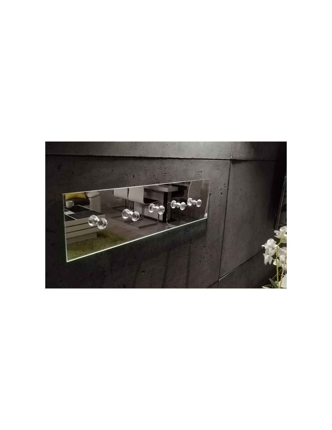 Osvětlení LED se rozsvítí, když se dotknete povrchu zrcadla v místě spínače. Spínač je trvale osvětlen - bez ohledu na osvětlení zrcadla. Díky osvětlení spínače jej lze snadno najít i ve tmě.